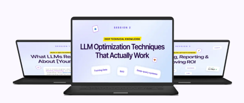 Get crystal-clear on what AI knows about your brand, how to optimize across LLMs, and how to track results you can confidently report to clients or managers. - 9 Practical Bonuses Included
