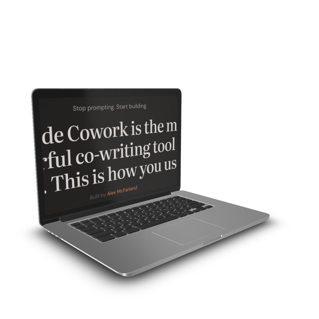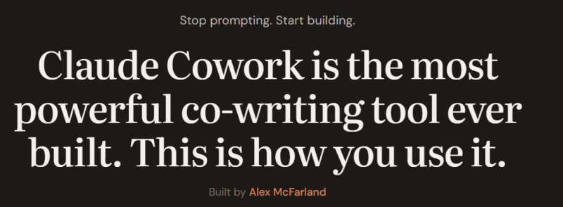 A living platform of custom-built AI co-writing tools for Claude Cowork. Built from years of real production work — ghostwriting, automated publishing, and running a full business through Claude. Your voice. Your context. No code.
